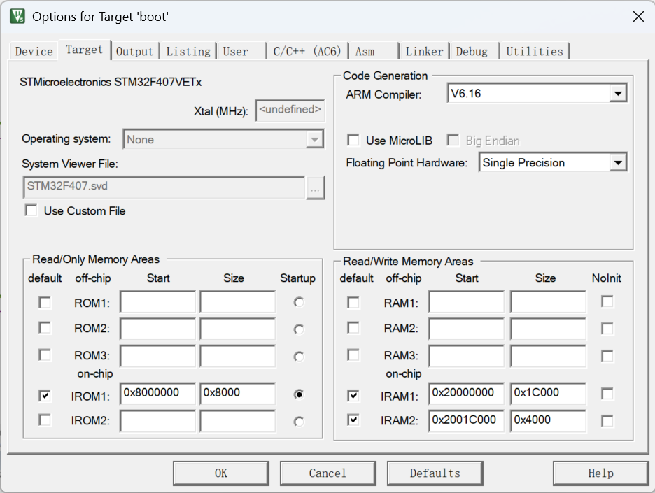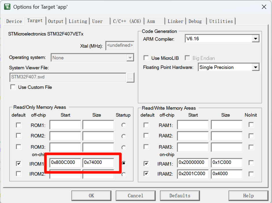 这是 Bootloader 最关键的配置,决定了程序存放在 Flash 的哪个位置。